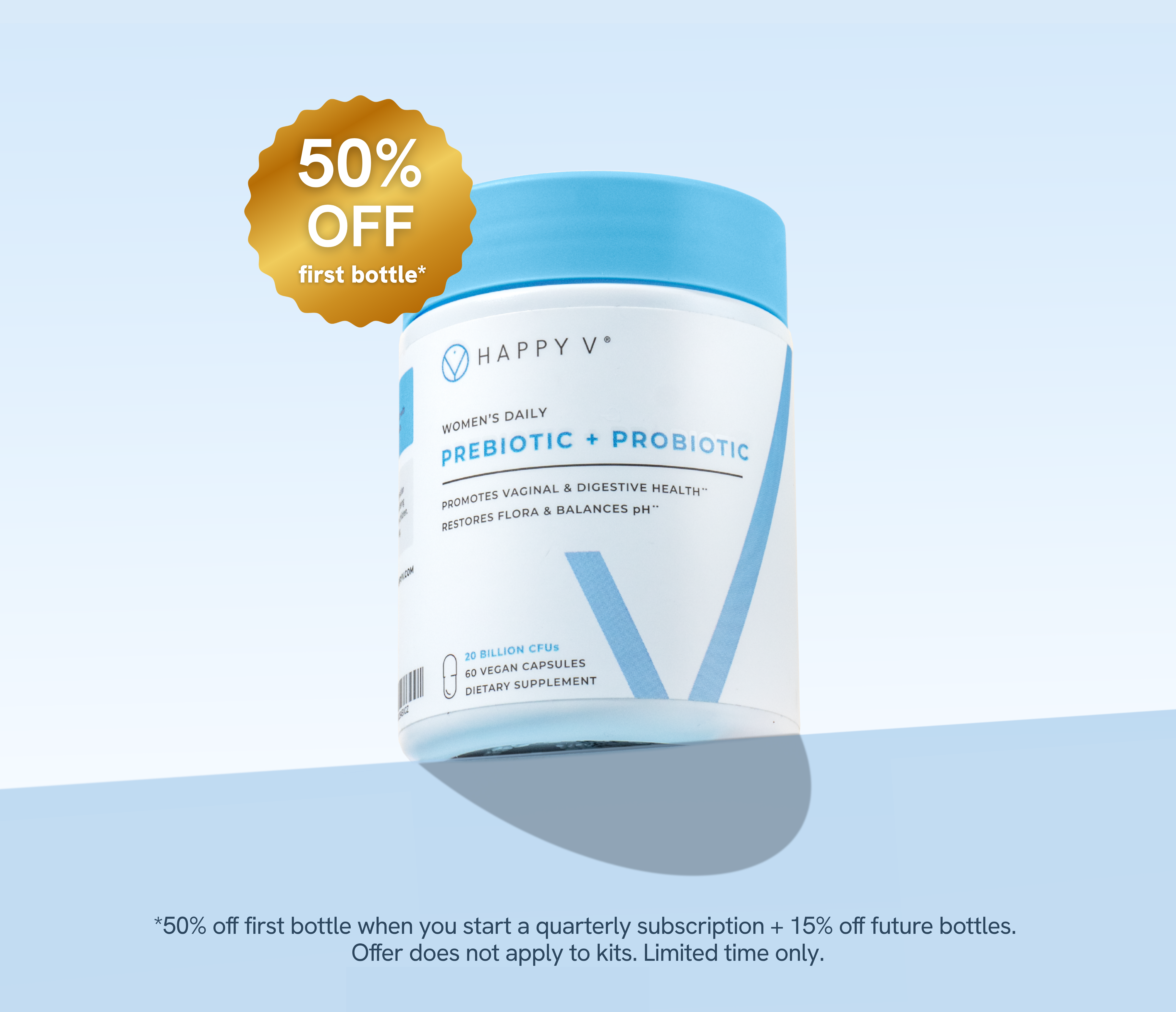 With the bad bacteria out of the way, the vaginal microbiome is in the perfect condition to reintroduce and accept good bacteria. Happy V's Prebiotic + Probiotic provides a broad-spectrum of Lactobacillus and Bifidobacterium to begin repopulation.*