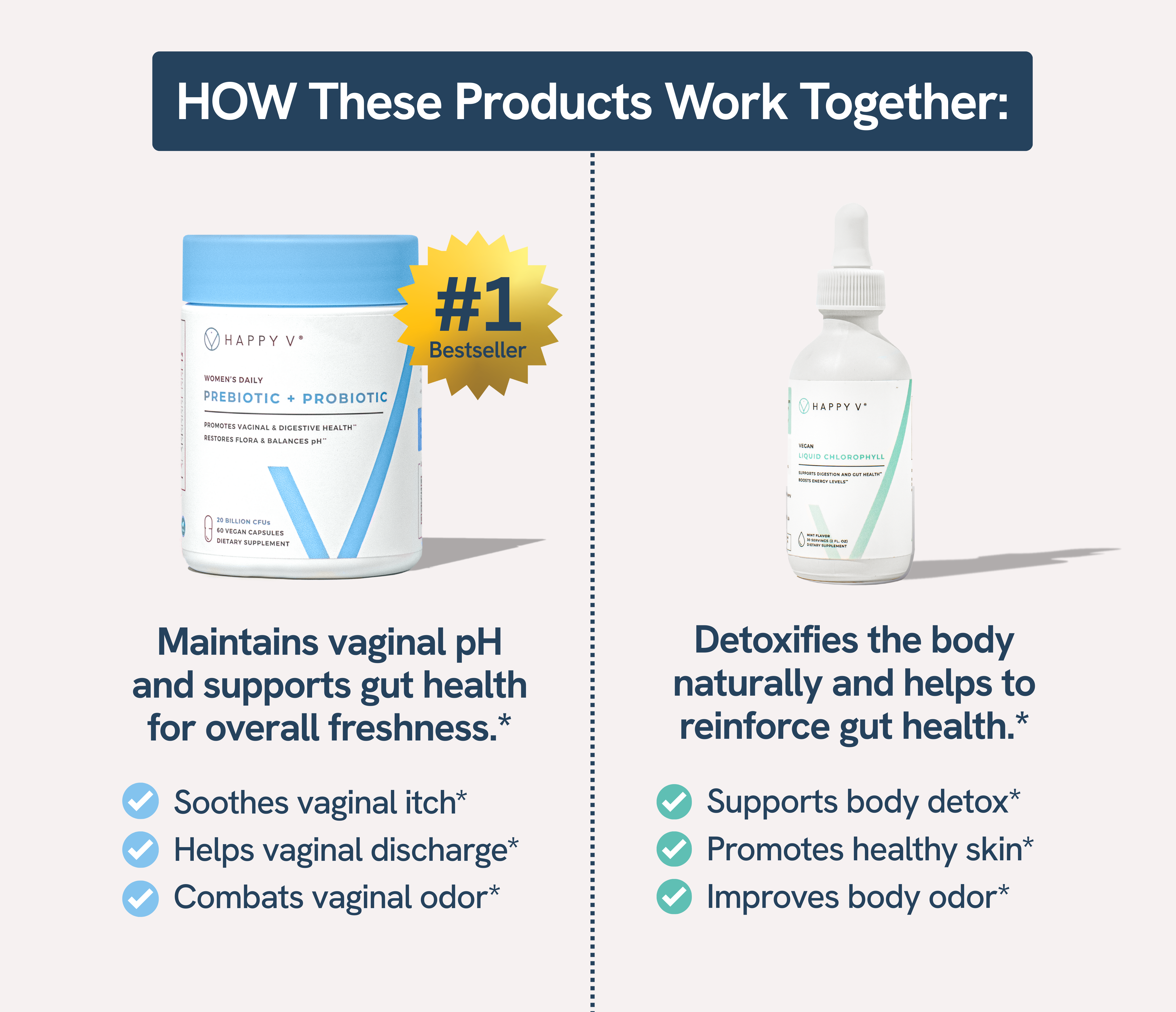 Why does the Happy V® Fresh Start Kit include both the Happy V® Prebiotic + Probiotic and the Happy V® Liquid Chlorophyll ?