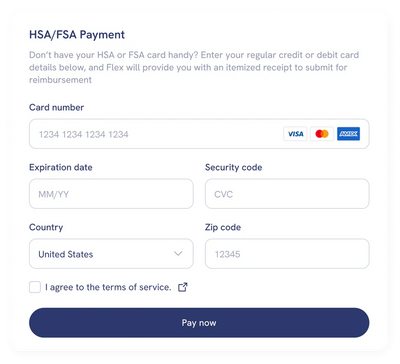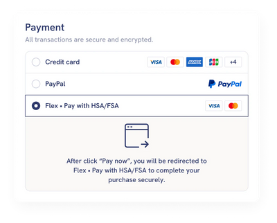 Select “Flex | Pay with HSA/FSA'' at checkout. Input your card details and checkout as usual.