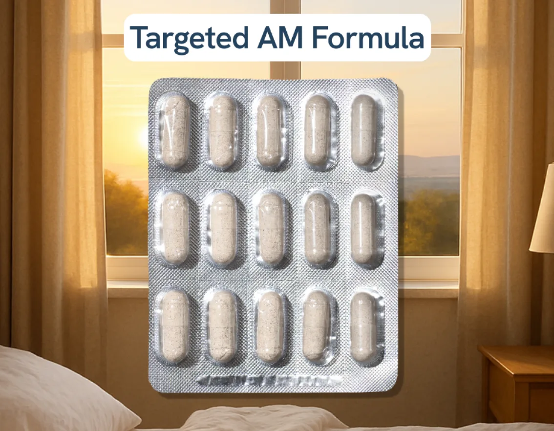 Take one (1) AM capsule in the morning with breakfast, and one (1) PM capsule in the evening, about 30 minutes before bedtime. This two-part approach is designed to support your body’s natural circadian rhythm.