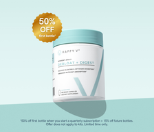 Our Happy V® Debloat + Digest was created for anyone who experiences uncomfortable symptoms associated with food intolerances including bloating, gas, indigestion and irregular bowel movements.