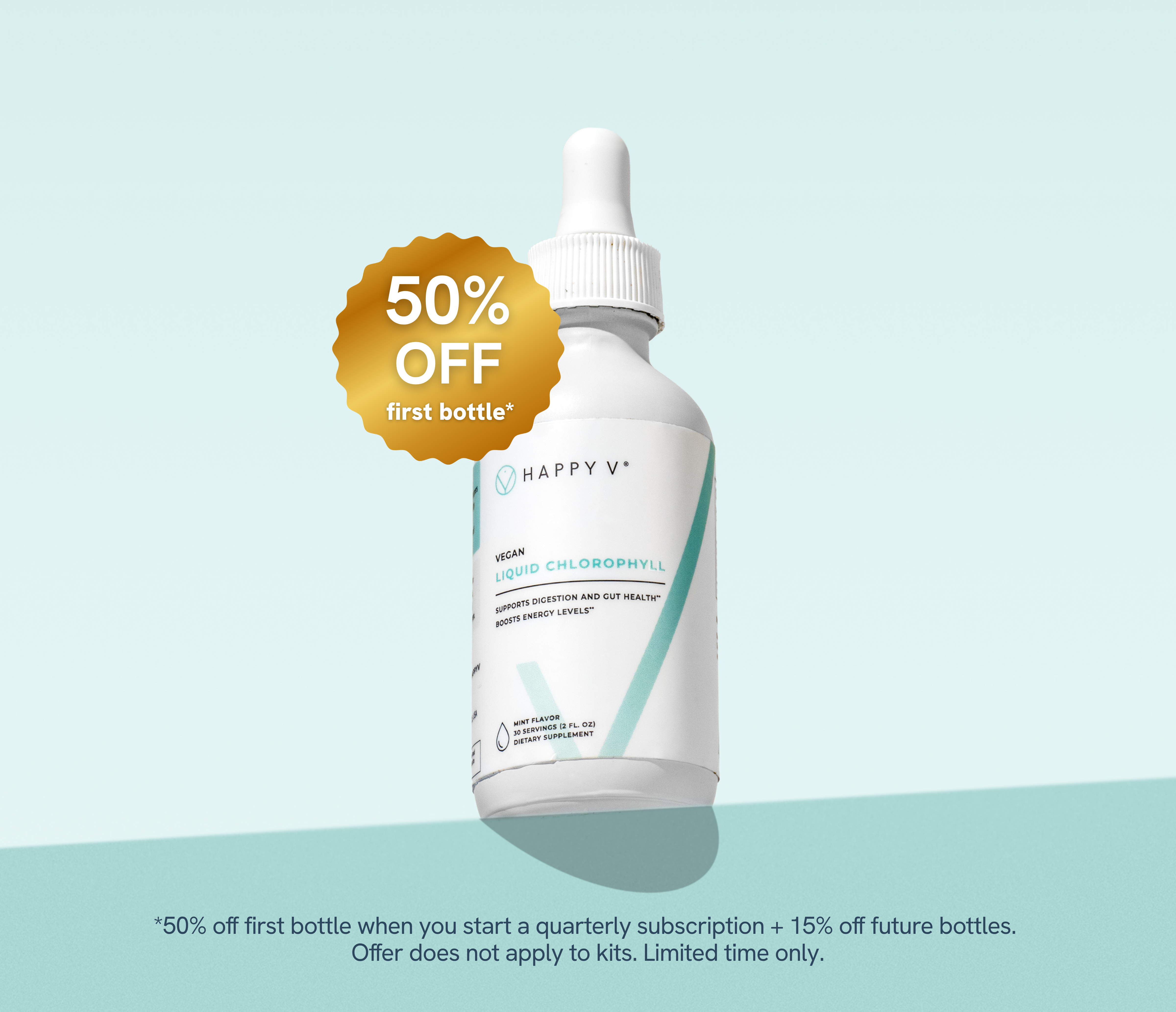 Add 2 full droppers of Happy V® Liquid Chlorophyll to water (or any drink) once daily, stir well, and enjoy chilled for best taste. You can also take it directly by mouth. Consistency matters for long-term results.*